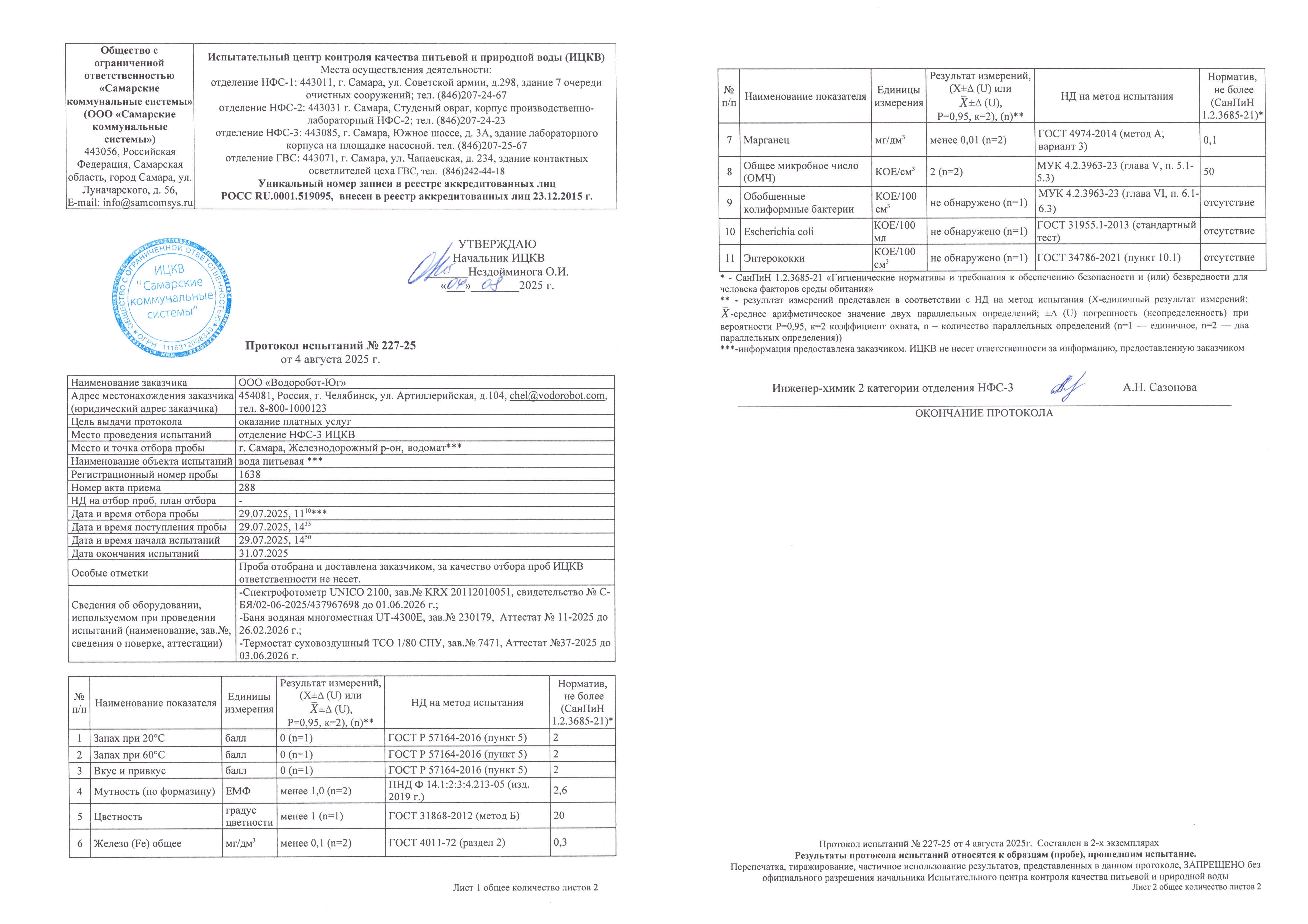 Регулярный контроль качества воды